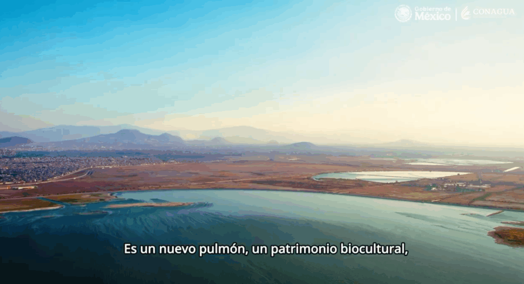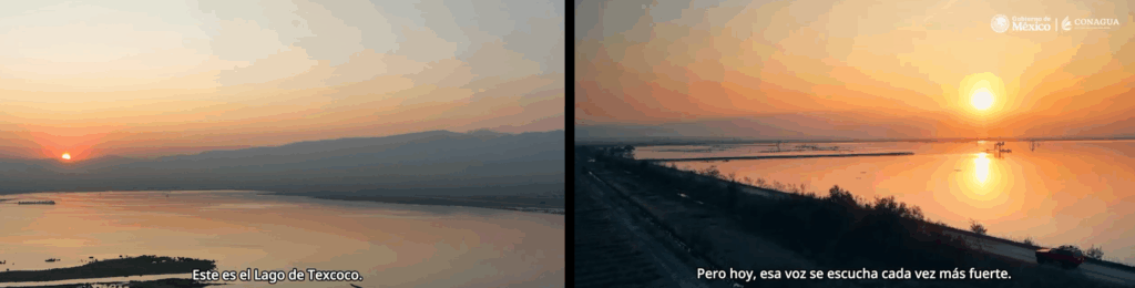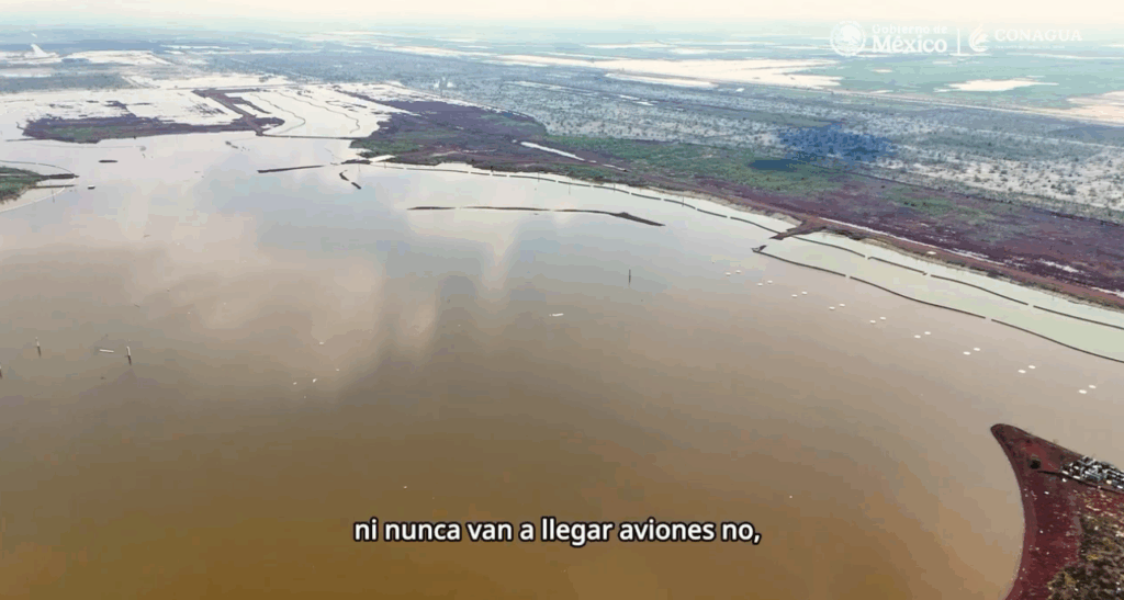 Seguidamente, en el video se narra que «este es el lago de Texcoco, el lugar donde se proyectó hacer un aeropuerto ignorando la voz de la naturaleza».