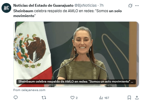 La presidenta Sheinbaum celebra el respaldo de su antecesor, tras mensaje en redes sociales. AMLO aclara términos de su retiro político