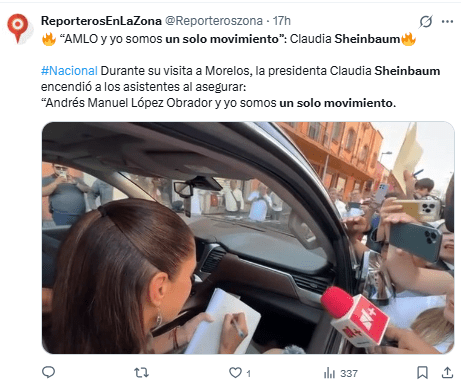 La presidenta Sheinbaum se refirió a la reaparición de su antecesor durante su llegada a Cuernavaca, Morelos.