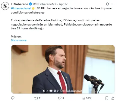 Regeneración, 13 de abril 2026– La primera etapa de las pláticas entre Washington y Teherán culminó sin logros significativos tras 21 horas de diálogo en Islamabad. Ambas partes consideran cerrado este primer ciclo de negociaciones, el más importante en casi medio siglo, aunque no se alcanzó el consenso esperado.