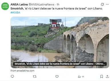 “Lo digo aquí categóricamente… en cada sala y en cada debate: la nueva frontera israelí debe ser el Litani”, declaró.