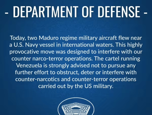 Washington calificó la maniobra como un «movimiento provocativo diseñado para interferir» en las operaciones que EU adelanta contra los carteles en la región.