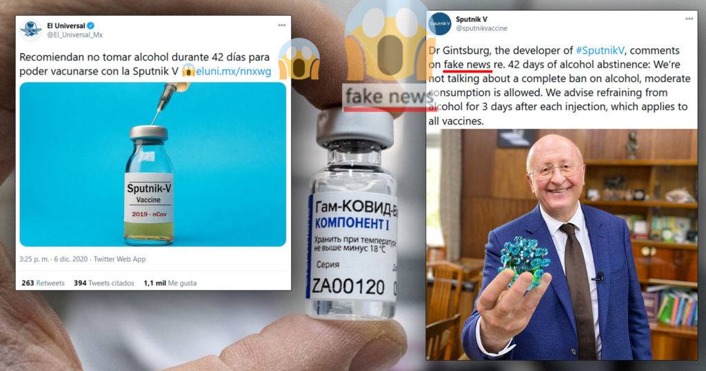 El Universal dijo que la Sputnik V requiere de «42 días de abstinencia de alcohol». Desarrolladores de la vacuna covid-19 informaron que eso es falso