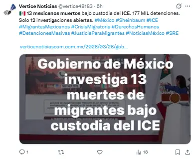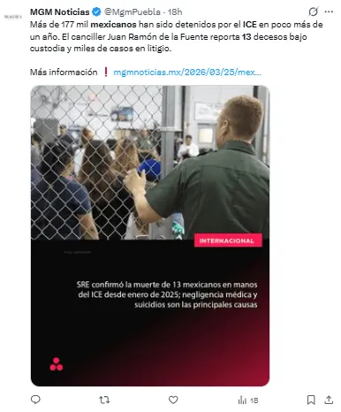 Regeneración, 26 de marzo 2026– Debido a la intensificación de las políticas antimigratorias del gobierno de Donald Trump, 13 personas mexicanas han fallecido bajo la vigilancia del Servicio de Inmigración y Control de Aduanas (ICE).