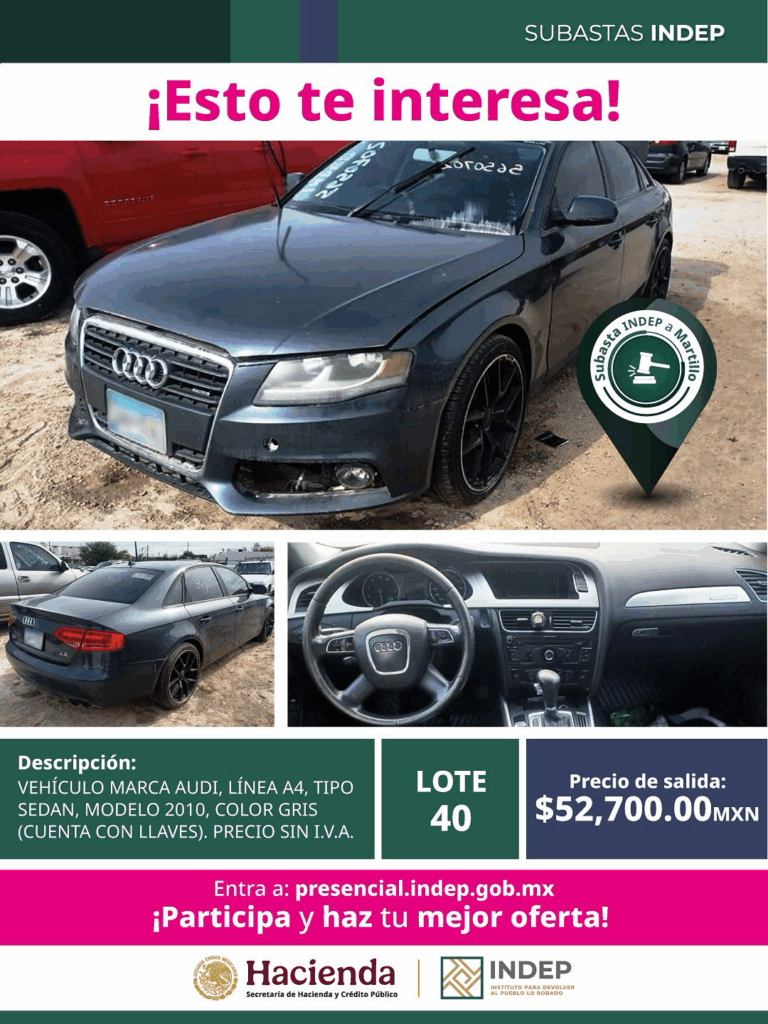 Regeneración, 24 de octubre de 2025.– El Instituto para Devolver al Pueblo lo Robado (INDEP) anunció una nueva subasta.