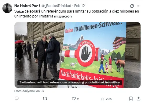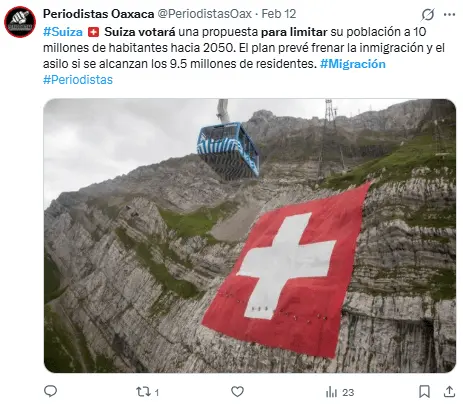 Regeneración, 13 de febrero 2026– Suiza decidirá en una votación si restringe su población a 10 millones para el año 2050, una iniciativa del partido conservador de derecha, el Partido Popular Suizo, que plantea que hay que equilibrar la inmigración con la demanda de empleo.
