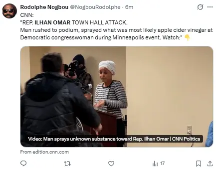 Omar continuó con su discurso durante aproximadamente 25 minutos más después de que la seguridad llevó al hombre, afirmando que no se dejaría amedrentar.