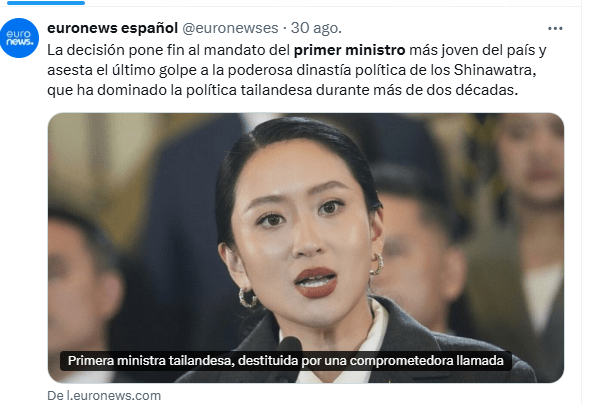 El Tribunal Constitucional de Tailandia determinó el 29 de agosto que había violado la ética ministerial y la despidió después de sólo un año en el poder.