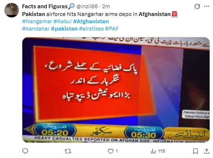 El gobierno afgano comunicó que esta operación fue una respuesta a los ataques militares de Pakistán y alertó que podrían ocurrir nuevas represalias.