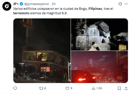 Regeneración, 30 de septiembre 2025– Un fuerte terremoto en alta mar con una magnitud preliminar de 6,9 sacudió el centro de Filipinas el martes por la noche, obligando a los residentes a salir a las calles, dañando una iglesia de piedra.