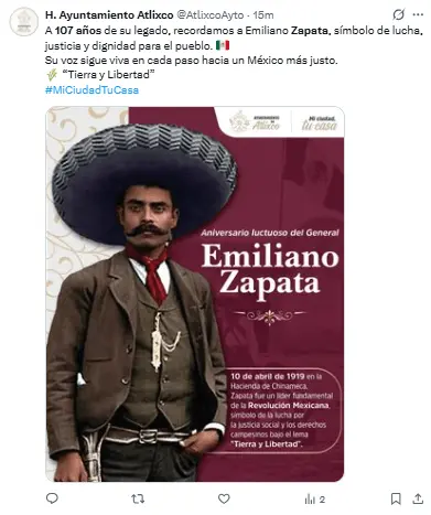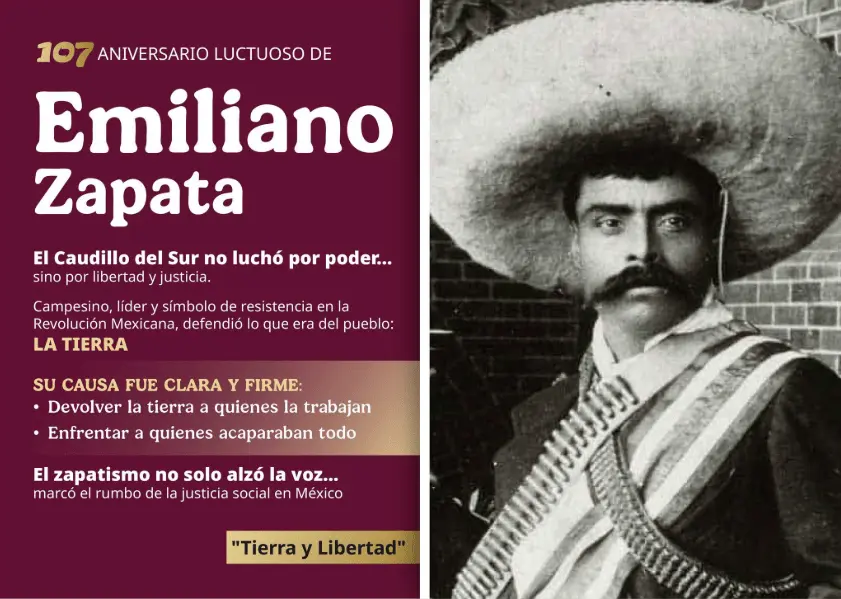 Zapata lideró la lucha armada por la tierra en el sur del país durante la Revolución Mexicana, convirtiéndose en uno de los principales íconos del movimiento agrarista en México.