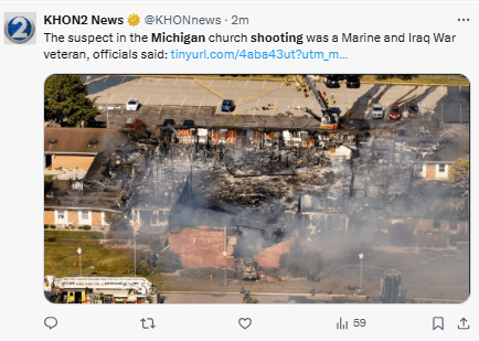 Disparos en iglesia mormona de Michigan provocan incendio. Hasta el momento 4 personas han muerto y se reportan 8 heridas