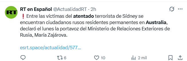 Regeneración, 15 de diciembre 2025– Las autoridades de Australia confirmaron este domingo la muerte de al menos 16 personas, incluido un atacante, y al menos 40 heridos en un tiroteo masivo ocurrido en Bondi Beach, Sídney.