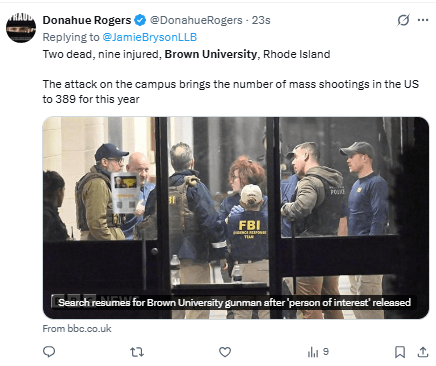 Además 9 heridos en Universidad Brown en Rhode Island, Hasta ahora este año han ocurrido 389 tiroteos en Estados Unidos