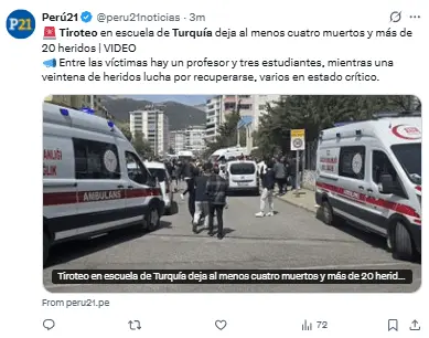 Un ataque similar dejó 16 heridos el pasado martes en una escuela de Turquía, lo que despierta alarmas en seguridad escolar