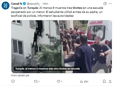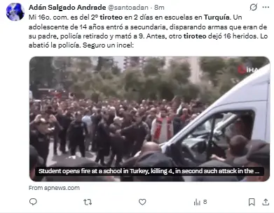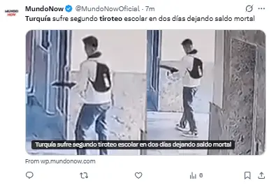 El martes, un joven abrió fuego en un liceo de Sanliurfa, en el sureste de Turquía, dejando 16 heridos antes de quitarse la vida.