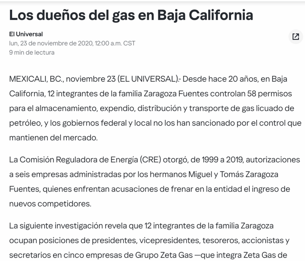 Y se indica que ambas pertenecen a la familia Zaragoza de Baja California que «controla el negocio desde hace años» en la entidad.