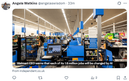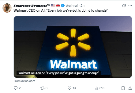 Walmart advirtió que todos y cada uno de sus empleados, desde cajeros hasta gerentes de tienda y altos ejecutivos, pronto verán transformado su rol por la inteligencia artificial .
