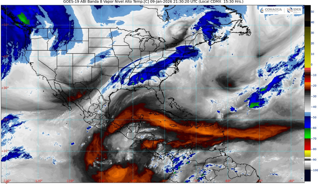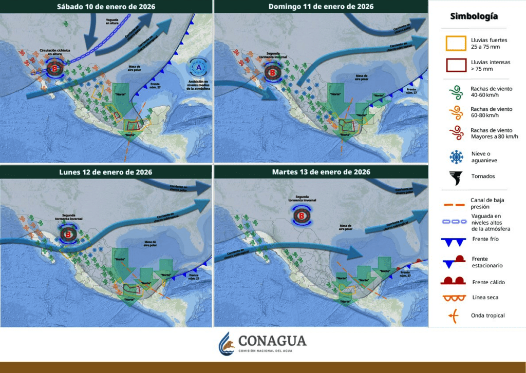 El sistema generará también un evento de norte en el Golfo de México, con rachas de viento de hasta 120 km/h frente a Veracruz y de al menos 100 km/h frente a Tamaulipas.