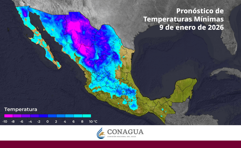 Los valores más bajos se esperan en la región de La Rosilla, Durango, donde se podrían registrar temperaturas por debajo de los -15 °C.