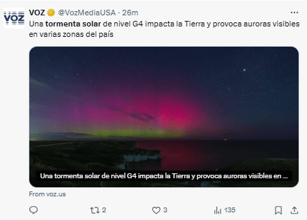 A pesar de las expectativas generadas entre los observadores de auroras, el momento de máxima actividad se prevé durante las horas de luz diurna en América del Norte.