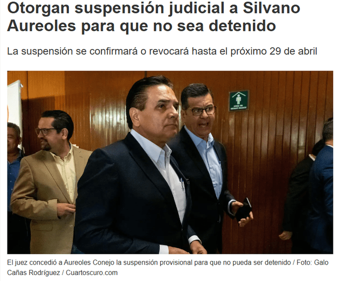 Como se sabe Aureoles recibió una suspensión para no ser detenido luego de que promovió un amparo “contra cualquier orden de aprehensión y/o reaprehensión; orden de detención; orden de arresto; y orden de comparecencia”.