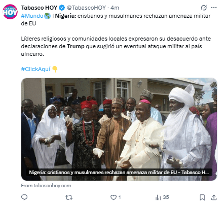 Anteriormente, Tinubu dijo en un post en X que la caracterización de Nigeria como un país religiosamente intolerante no refleja la realidad nacional.
