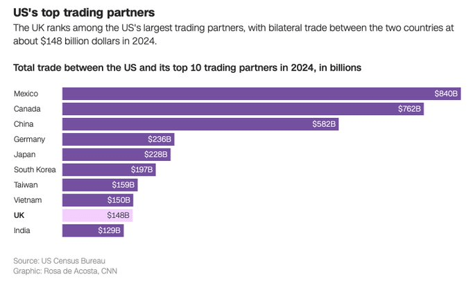 “Eliminará los aranceles sobre el acero y el aluminio británicos, reduciéndolos a cero”, y “concederá un acceso sin precedentes a los agricultores británicos sin comprometer nuestros elevados estándares”.