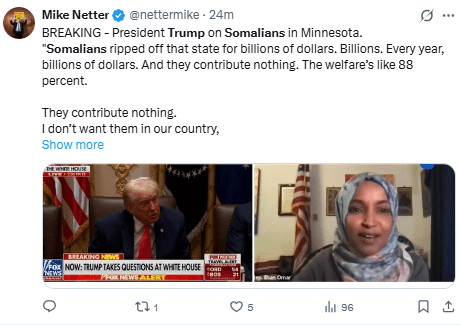 Pero después, el presidente extendió sus ataques e insultos hacia toda la inmigración somalí en EE.UU.
