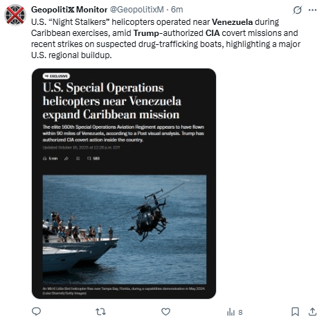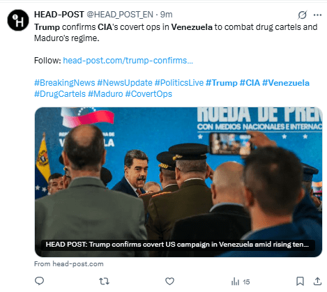 Regeneración, 16 de octubre 2025– El presidente de Estados Unidos reveló su autorización para acciones de la Central de Inteligencia (CIA) en Venezuela.