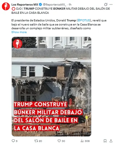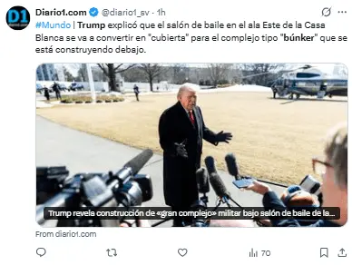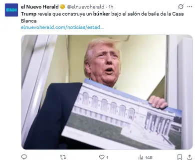 Trump construye un búnker «gigante» bajo el salón de baile