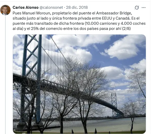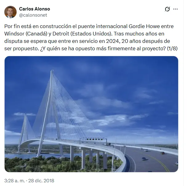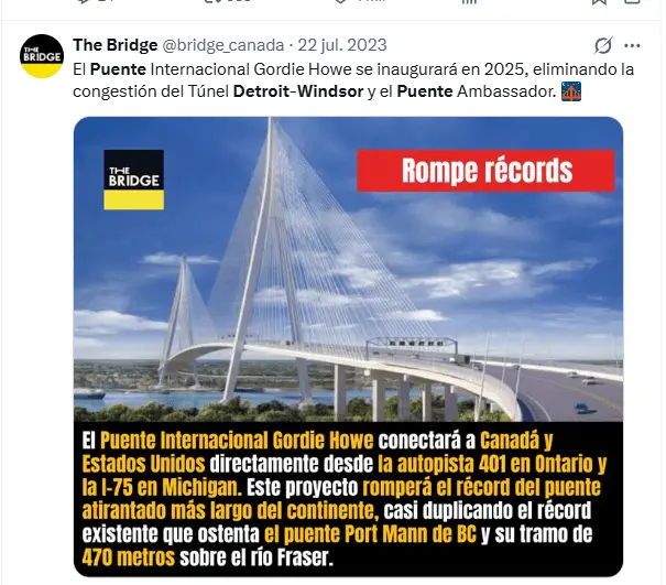 Cabe destacar que se indica en redes que se trata del cruce entre Windsor (Canadá) y Detroit (EE. UU.) y la construcción del Puente Internacional Gordie Howe.
