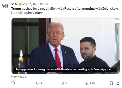 Regeneración, 21 de octubre 2025– El presidente Trump, instó al presidente Zelenski a que acepte las condiciones de Moscú para poner fin a la guerra, advirtiendo que, de lo contrario, podría ser destruido, informa Financial Times, citando a personas familiarizadas con el asunto.