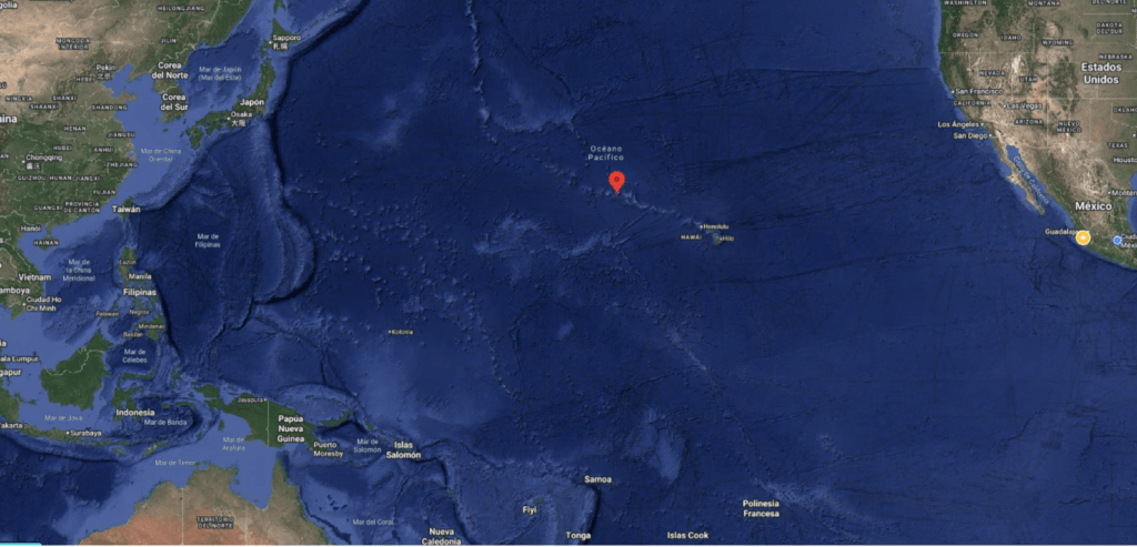 Se encuentra en la región noroeste del archipiélago hawaiano, aproximadamente a 3 mil millas de la masa continental más cercana.