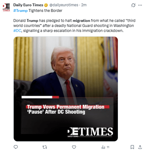 Regeneración, 28 de noviembre 2025– El presidente de Estados Unidos, Donald Trump, dijo el jueves que “suspendería permanentemente la migración de todos los países del tercer mundo” tras el tiroteo de dos soldados de la Guardia Nacional en Washington por parte de un ciudadano afgano.