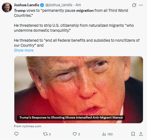 Trump amenazó con detener la migración de países del tercer mundo, reevaluará admisiones de Biden tras tiroteo en Washington, DC