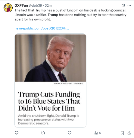 “Nuestra democracia está gravemente dañada cuando un presidente puede suspender ilegalmente proyectos para estados demócratas para castigar a sus enemigos políticos”, escribió Schiff en X.