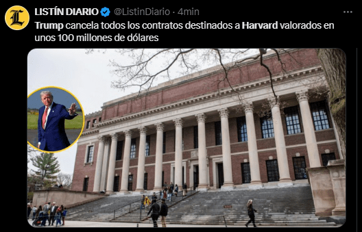 Pero no solo es eso, se reporta que Trump está haciendo su último movimiento para quitarle fondos a la Universidad de Harvard.