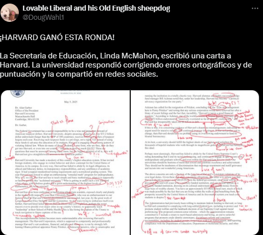 «Ante este preocupante patrón, cada agencia debería considerar sus contratos con la Universidad de Harvard y determinar si Harvard y sus servicios promueven eficazmente las prioridades de la agencia», dice la carta.