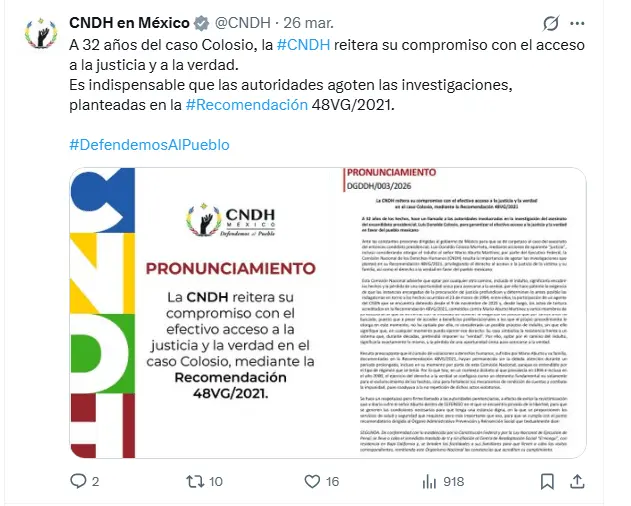 Esto: «a fin de abonar al derecho a la verdad que tienen las víctimas, las cuales son el centro de las actuaciones de esta Comisión Nacional de los Derechos Humanos», se indica.
