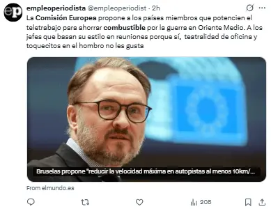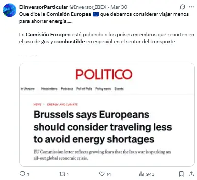 En la carta, el comisario menciona que la AIE publicó el pasado 20 de marzo un documento con diez recomendaciones para ahorrar energía.