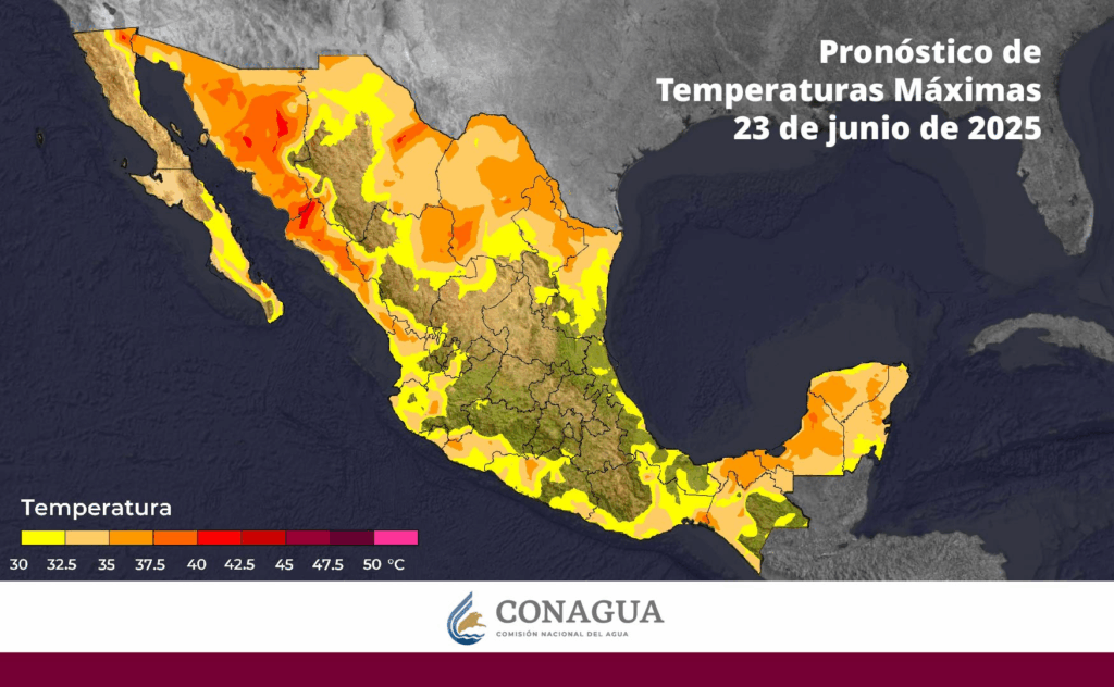 Lo anterior, con temperaturas máximas de 40 a 45 grados Celsius por la tarde en Sonora; el noreste de Baja California y el norte de Sinaloa.