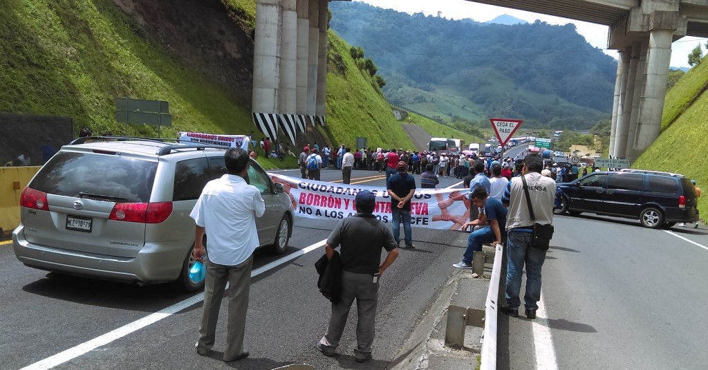 Decenas de inconformes cerraron la vialidad en el punto ubicado en la ex caseta de cobro de Texcapa, con dirección al Golfo de México y centro del país; argumentaron que desde el viernes pasado exigieron diálogo con autoridades federales y ejecutivos de la CFE, aunque no han tenido respuesta.