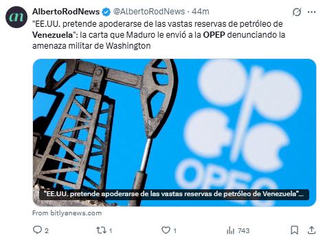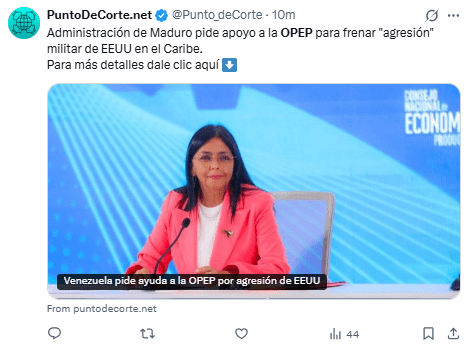 Regeneración, 1 de diciembre 2025– El Gobierno de Venezuela denunció, durante la conferencia ministerial 2025 de la alianza OPEP+, que EE.UU estaría intentando apoderarse de las reservas de petróleo del país bajo el argumento de combatir el narcotráfico con el despliegue militar en el Caribe.
