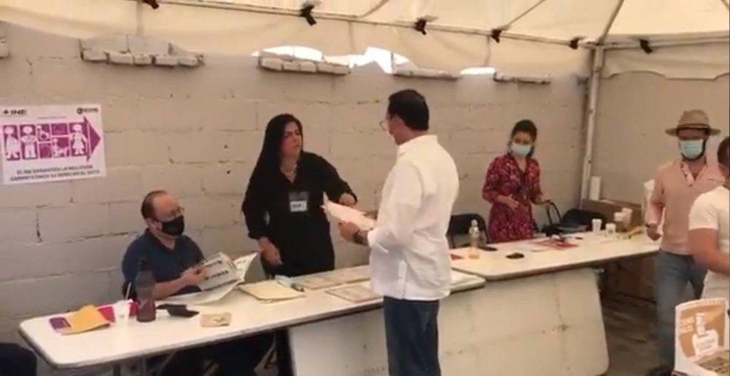 En el video se observa que Aguilar lo reconoció cuando el aspirante se acercó a la mesa de la casilla y mostró su identificación de elector para que le dieran las boletas. «Aquí tienen al misógino número 1 de San Luis», expresó la ciudadana.