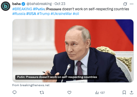 Al criticar duramente las últimas sanciones estadounidenses, que buscan recortar los ingresos energéticos del Kremlin y obligarlo a negociar sobre la guerra en Ucrania…