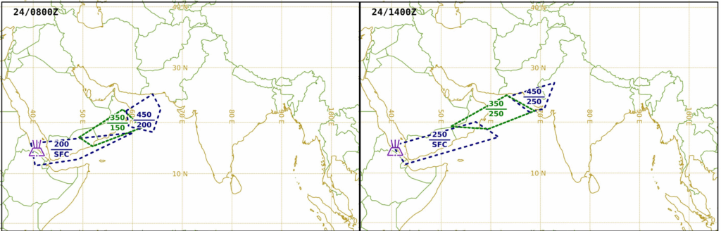 Nubes de ceniza llegaron hasta Yemen, Omán, India y el norte de Pakistán. Esto, según el Centro de Asesoramiento de Cenizas Volcánicas de Toulouse (VAAC) en Francia.