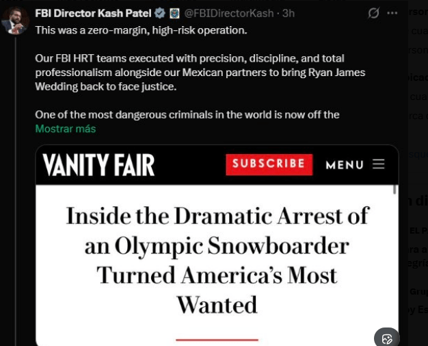 «Cuando llega el director del FBI a los Estados Unidos, dice que esta persona canadiense: “hubo un operativo bilateral que llevó a la detención de esta persona”.