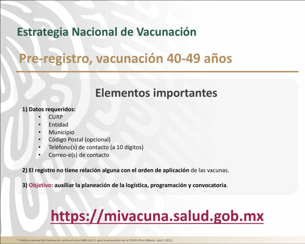 ¡Ya está activo el pre-registro para adultos de 40 a 49 años! El 1 de junio inicia la vacunación contra Covid-19 para este segmento de la población y el objetivo del gobierno federal es inmunizar a 11.4 millones de personas.
