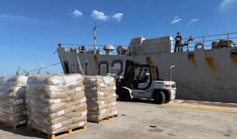 Los víveres provenientes de la Región Naval Central «se concentraron en el muelle de la Administración del Sistema Portuario Nacional (Asipona) Veracruz, desde donde se realizó el embarque correspondiente».